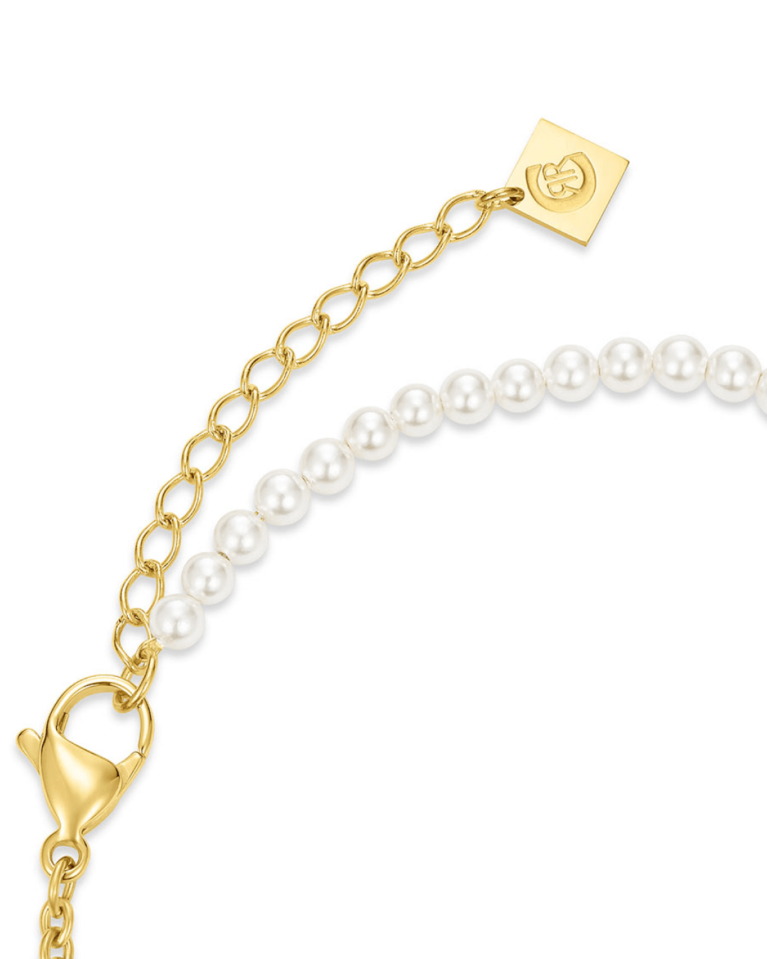 Made of gold-plated stainless steel at warm yellow gold tone, the bracelet features bright white zircons, which add elegance and feminine finesse. The chain design gives it a timeless style, making it ideal for both everyday use and more formal occasions.