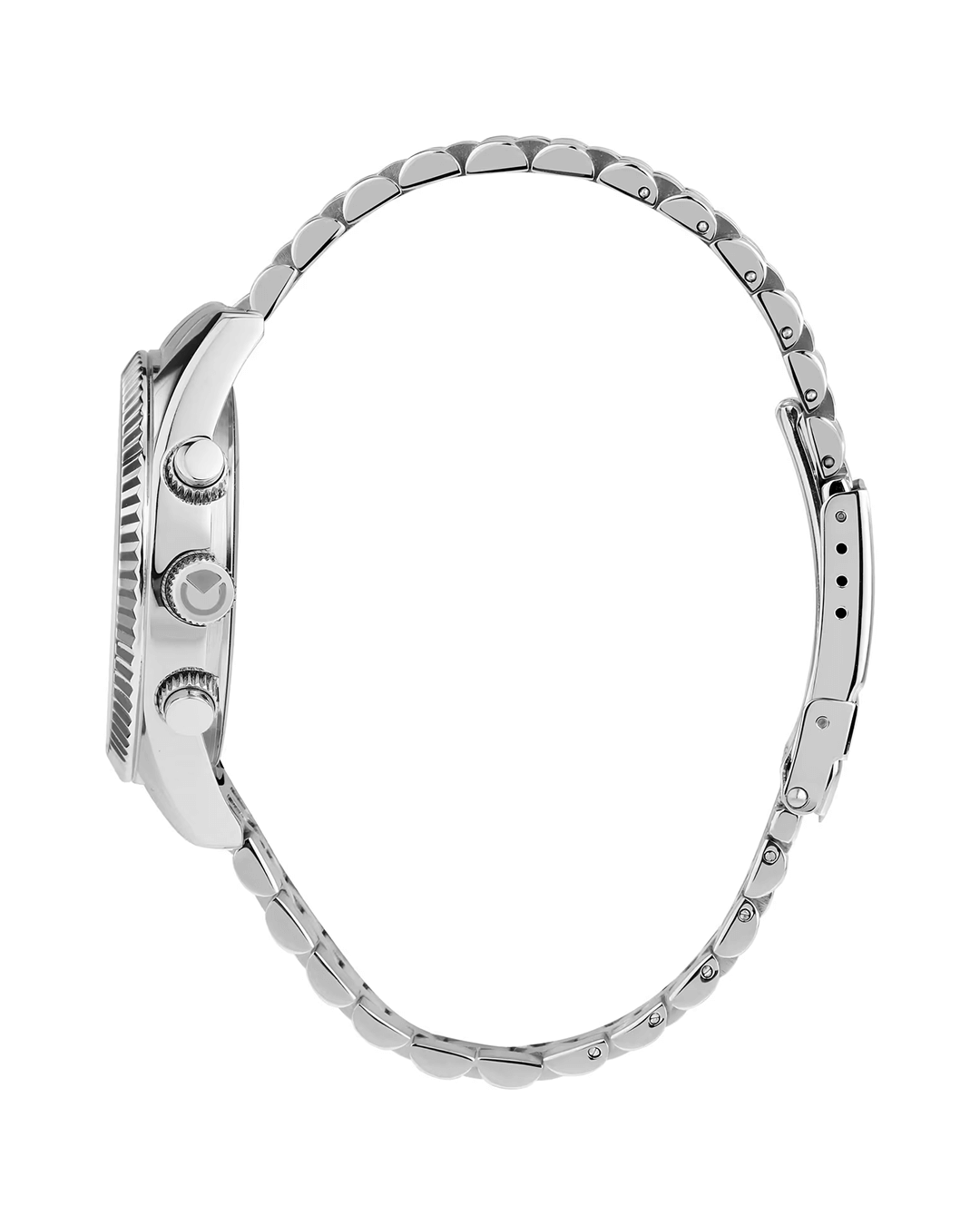 Το μπρασελέ από ανοξείδωτο ατσάλι σε ασημί απόχρωση, με κούμπωμα δύτη και κλείδωμα ασφαλείας, ολοκληρώνει την κομψή και στιβαρή του εμφάνιση. Ο μηχανισμός Quartz (μπαταρίας) προσφέρει ακρίβεια και αξιοπιστία, ενώ η αντοχή στο νερό έως 5 ATM (50 μέτρα) το καθιστά κατάλληλο για καθημερινή χρήση και ελαφριές επαφές με το νερό.